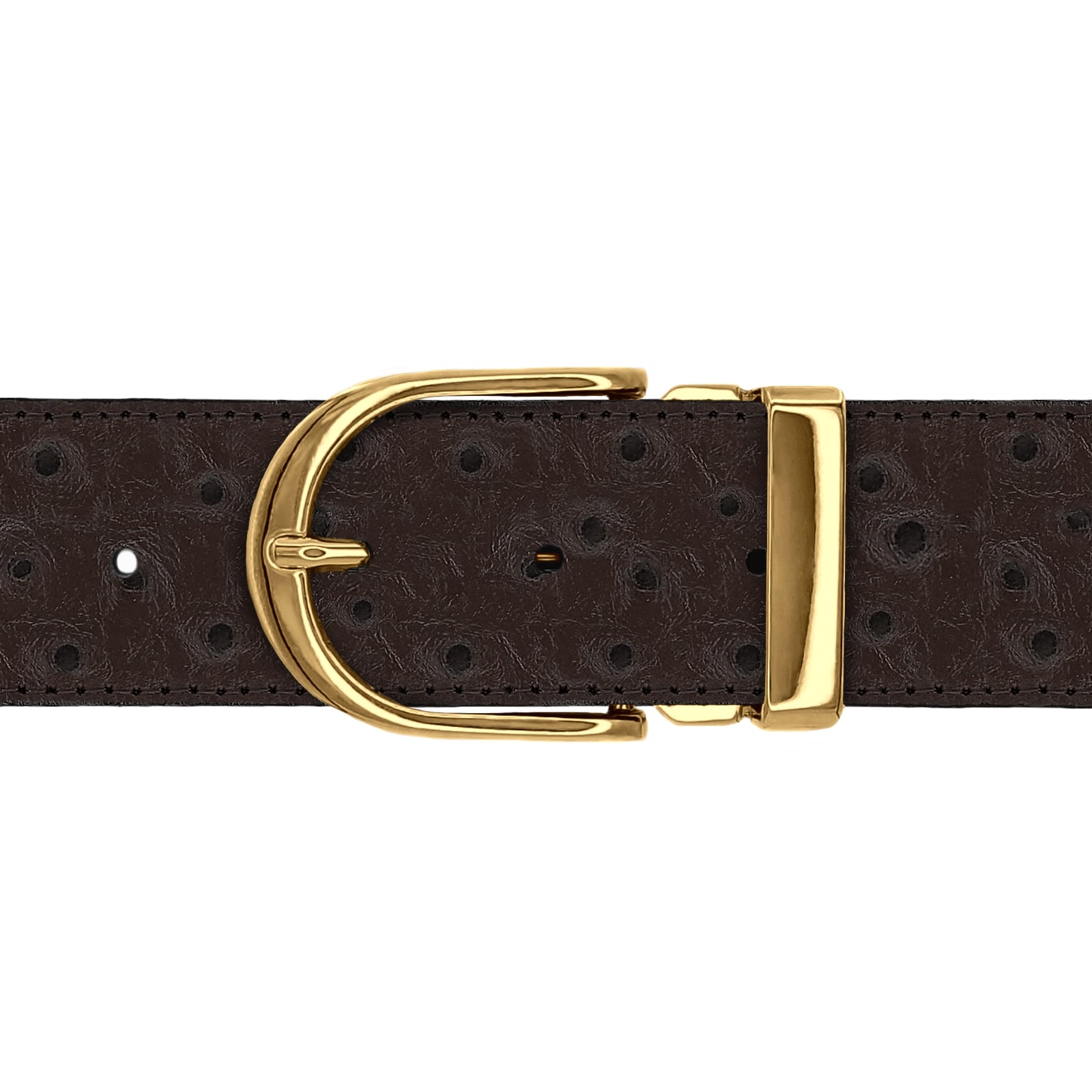 Ceinture 40 mm cuir façon autruche marron boucle Roma or