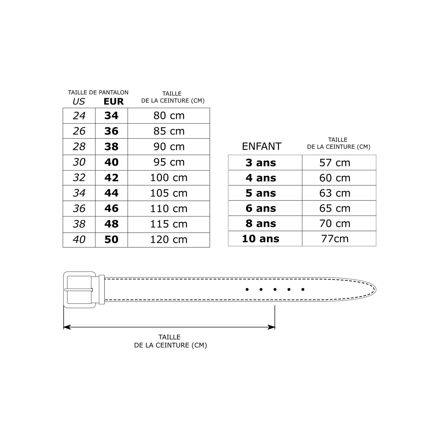 Guide des Tailles pour Ceintures