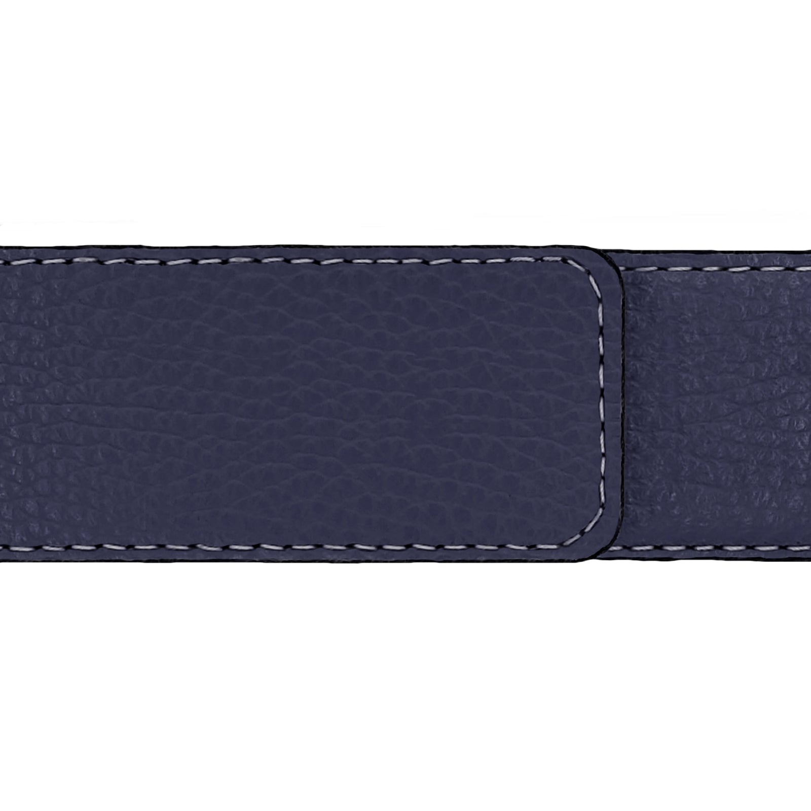 Cette ceinture en cuir souple bleu marine 40 mm avec sa boucle Milano or conviendra aussi bien à un style sportswear qu'à une tenue raffinée. Ce grainage intemporel, mais en lumière le savoir-faire des tanneurs italiens. Cette boucle est munie d’un passant intégré. Grâce à une fixation à mâchoire, vous pourrez changer le cuir ou la boucle de votre ceinture selon vos envies.